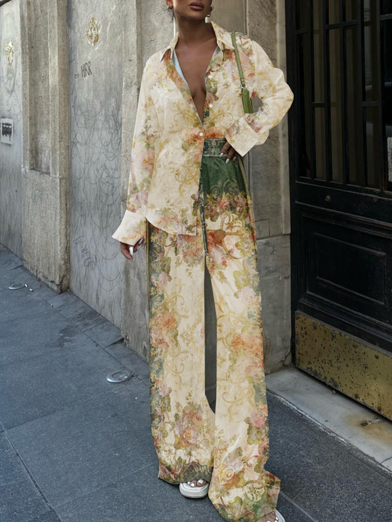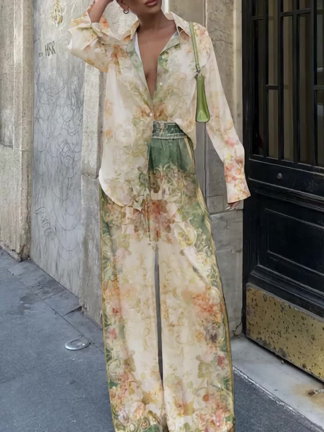 Luna | Chic Print Top & Elastic Waist Pants Set